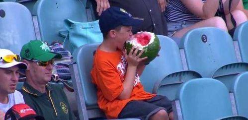 看球赛吃瓜,已经成为孩子们的一种习惯。他们觉得,这样不仅能解渴,还能让球赛更加有趣。